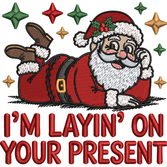 Funny Christmas Embroidered Santa T-Shirt, I’m Layin’ On Your Present Holiday Shirt