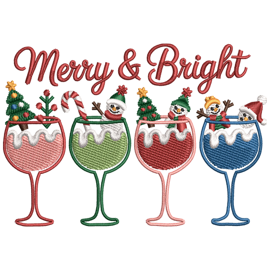 Merry & Bright Christmas Embroidery Shirt – Festive Holiday Wine Glass Design