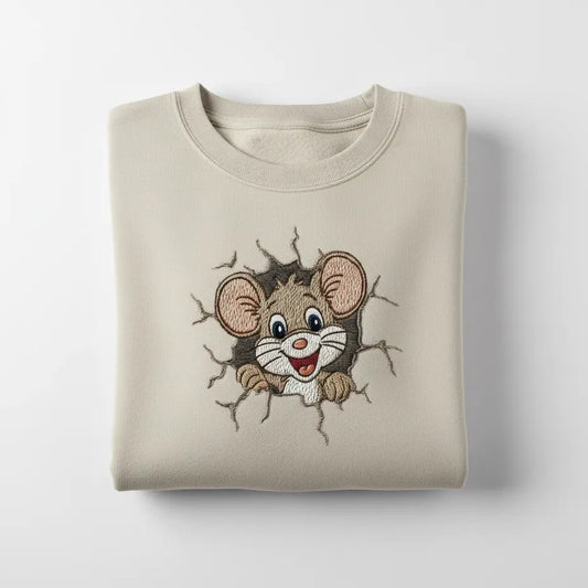 Happy Mouse Embroidery Design Breaking Wall, Animal Machine Embroidery File