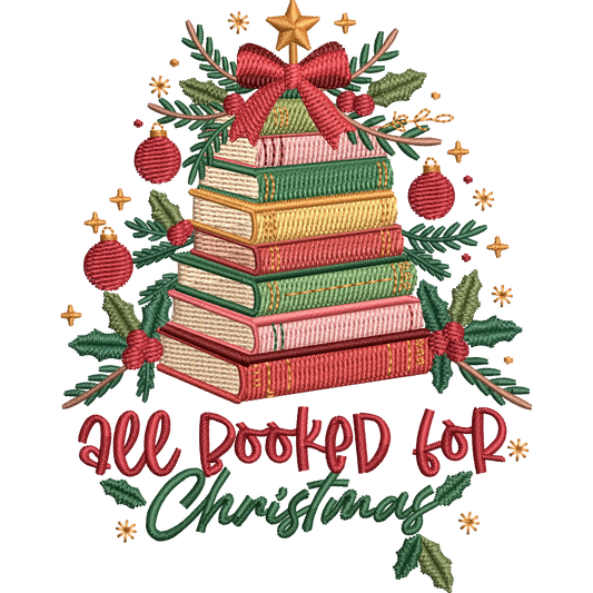 All Booked for Christmas Embroidery Design – Christmas Book Stack Machine Stitch File