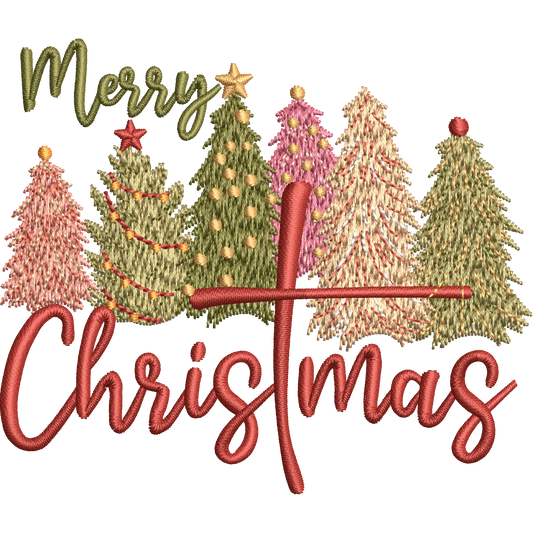 Merry Christmas Embroidered T-Shirt with Festive Tree Design – Holiday Winter Gift Tee