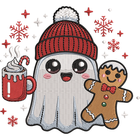 Christmas Ghost Embroidery Design File – Cute Holiday Gingerbread Pattern