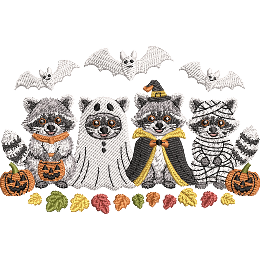Halloween Raccoon Embroidery Design Set, Cute Fall Animal Machine Embroidery Files